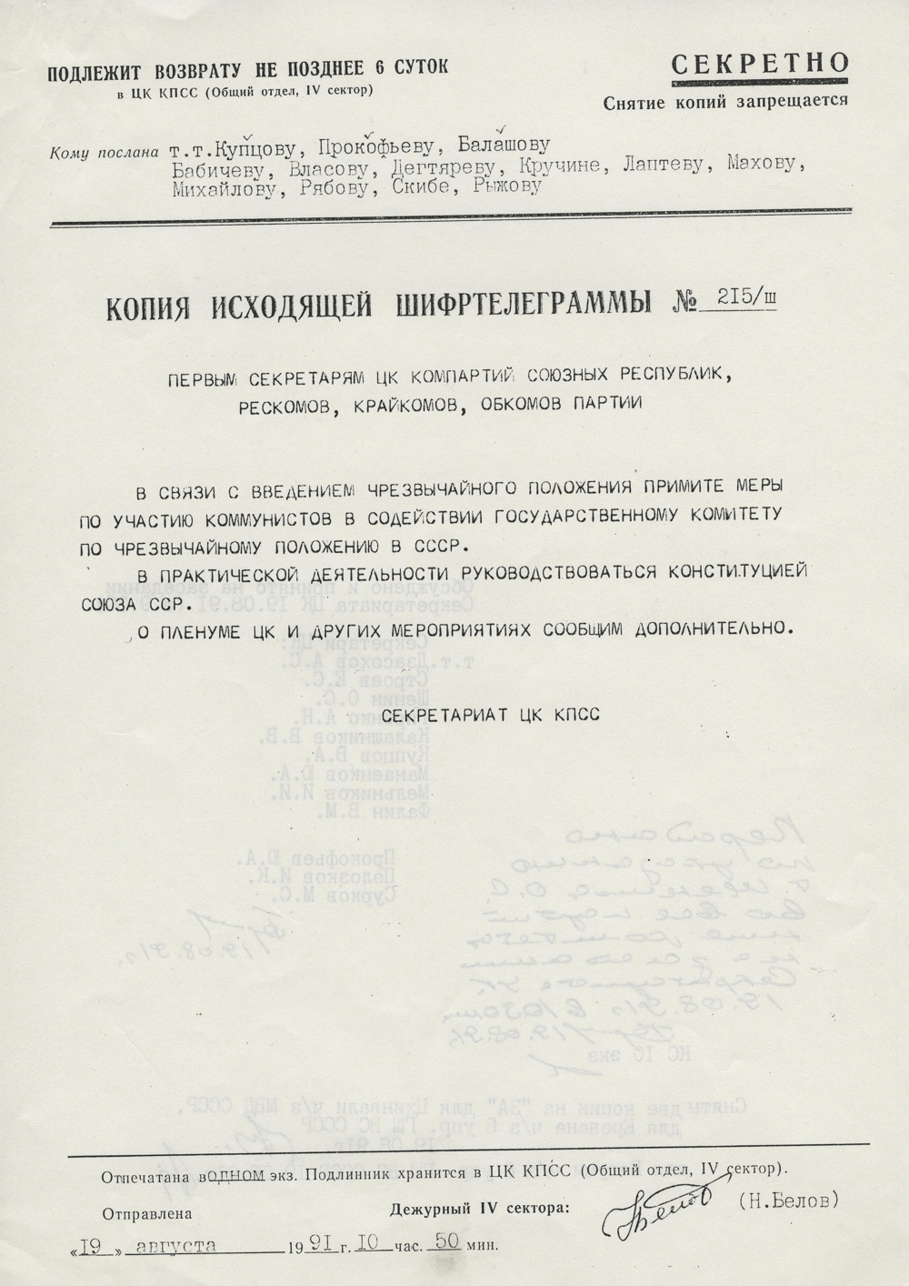 соответствии с Законом СССР «О правовом режиме чрезвычайного положения» и постановлениями ГКЧП СССР.