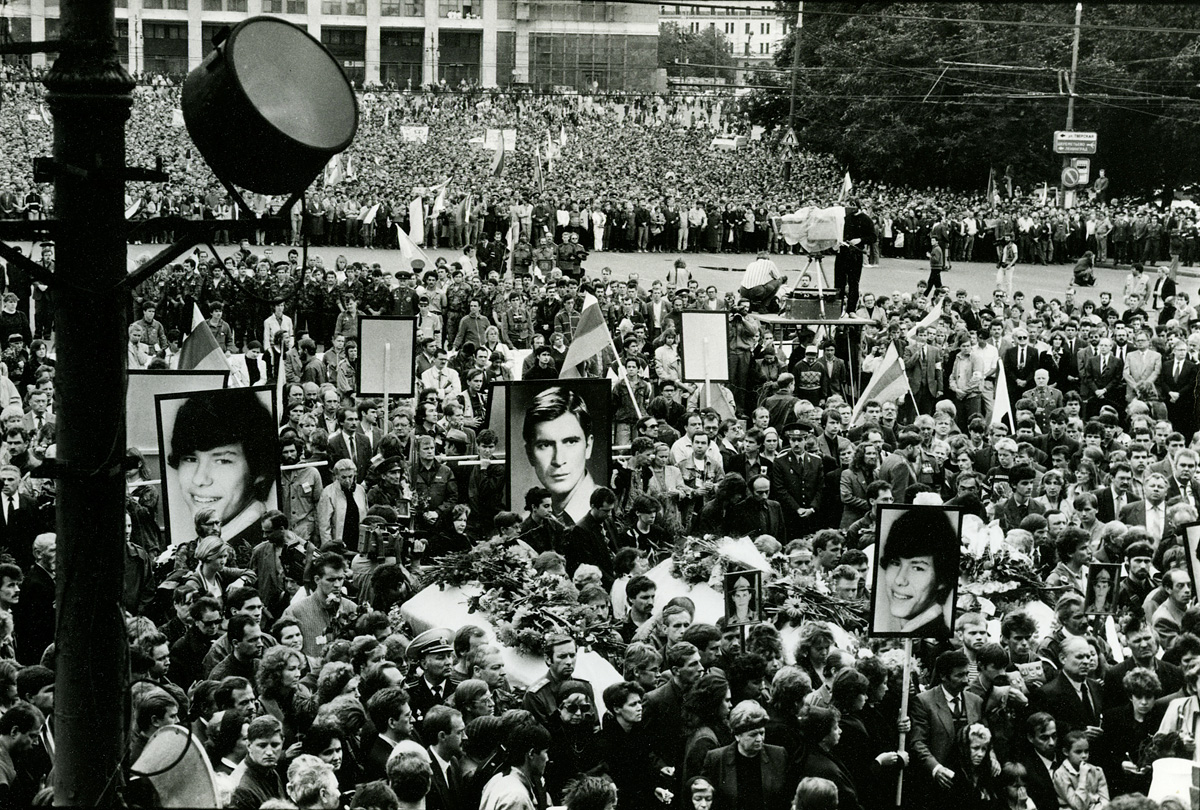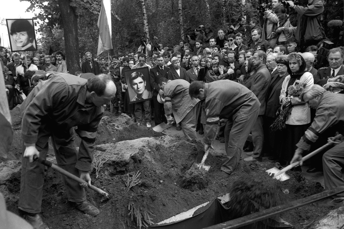 Несколько десятков тысяч человек пришли проститься с Усовым, Комарем и Кричевским. Они шли большой процессией от Манежной площади к Ваганьковскому кладбищу. В это время журналисты опросили демонстрантов о днях на баррикадах и погибших героях.